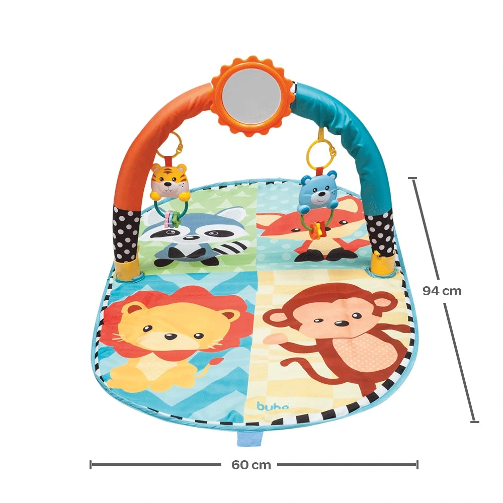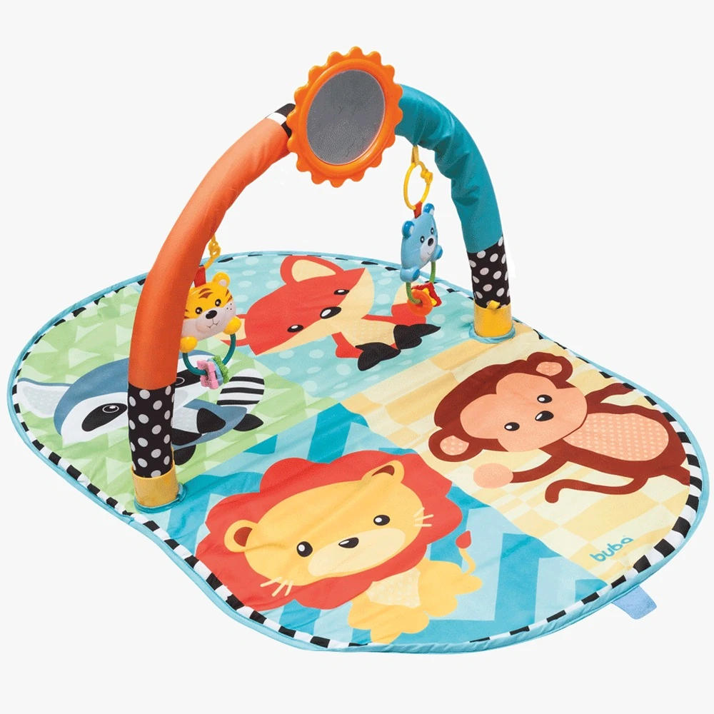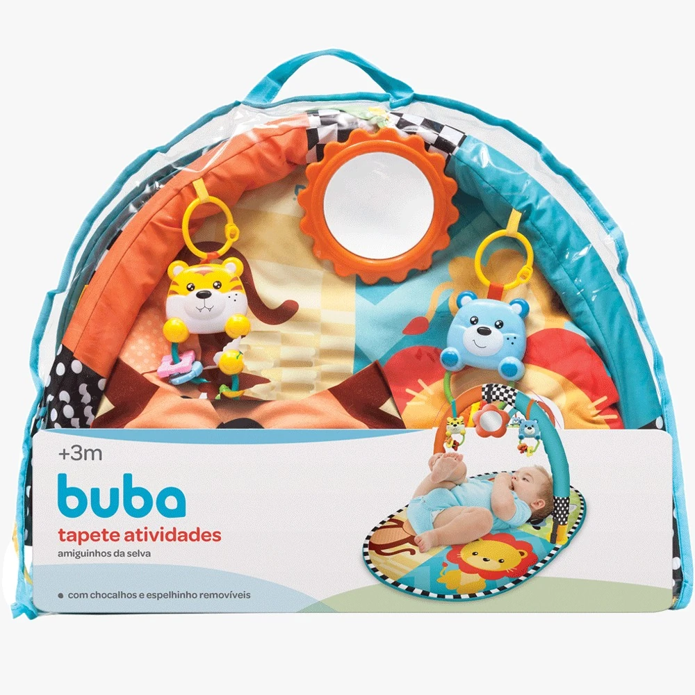 O tapete de atividades Amiguinhos da Selva entretém e estimula o bebê em seus primeiros meses de vida. Superconfortável, com personagens divertidos e cores vibrantes, é ideial para que os pequenos possam desenvolver seus sentidos e realizar as primeiras explorações de mundo. Possui brinquedinhos posicionados na altura ideal para o toque e espelhinho que incentiva a autodescoberta.