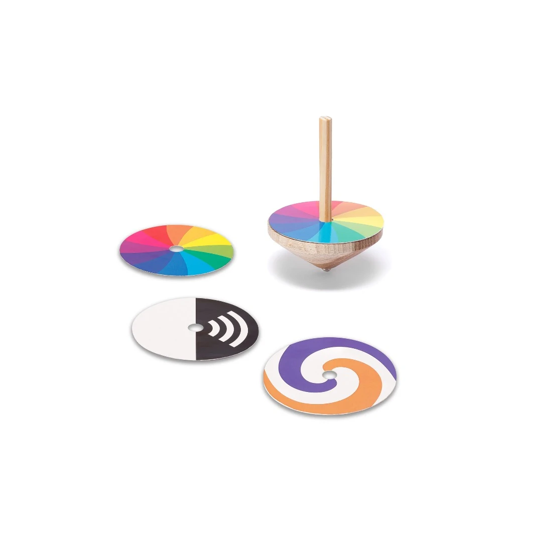 Em uma releitura de um brinquedo clássico que atravessa gerações, esse pião vem com discos que proporcionam efeitos visuais quando estão em movimento, causando uma sensação mágica para crianças e adultos!
