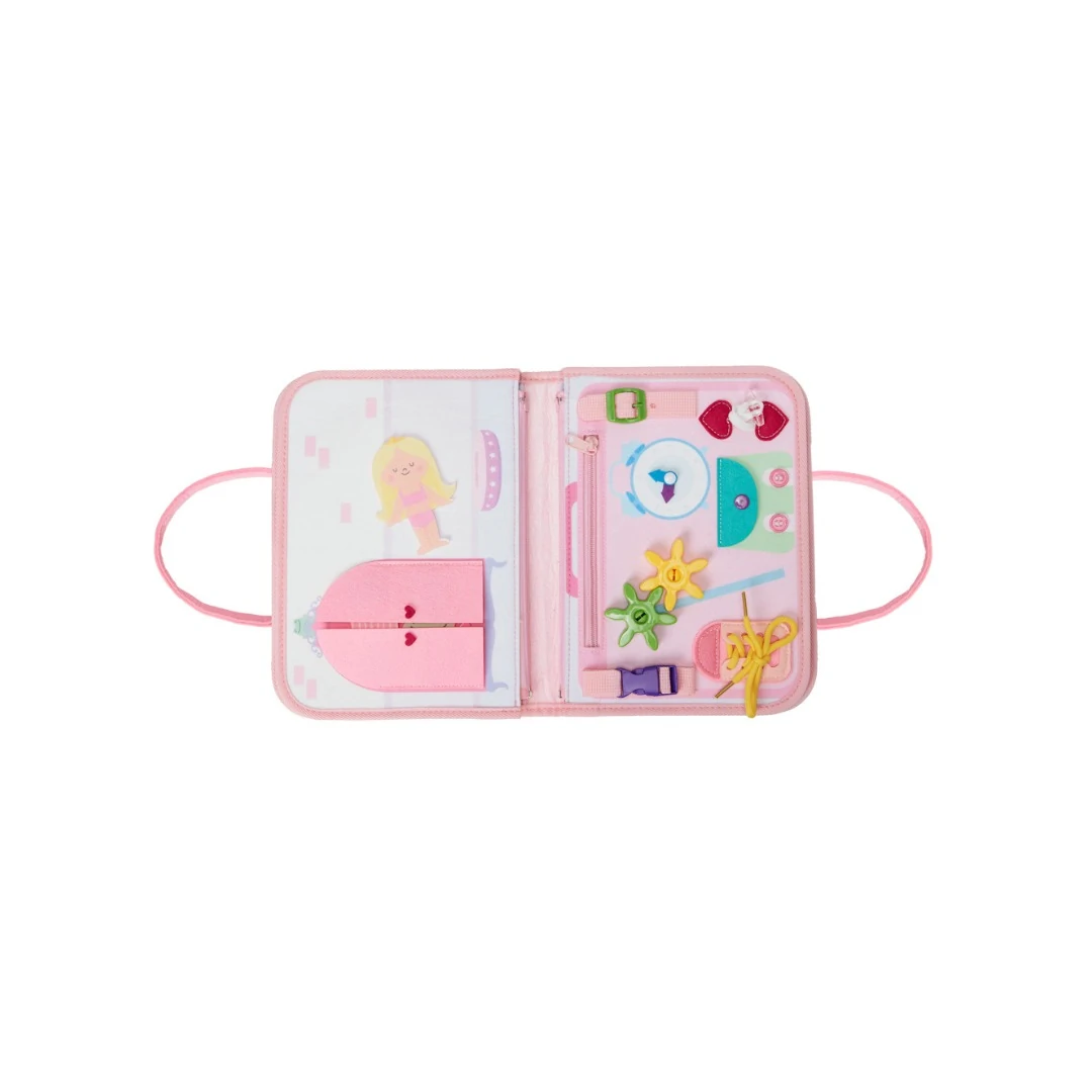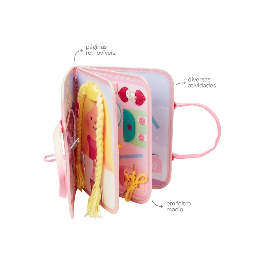Possui páginas destacáveis por zíper, fecho prático e alça para levar para qualquer lugar, sendo perfeito para viagens e passeios. Além de divertir ajuda no desenvolvimento da coordenação motora, concentração e raciocínio lógico.