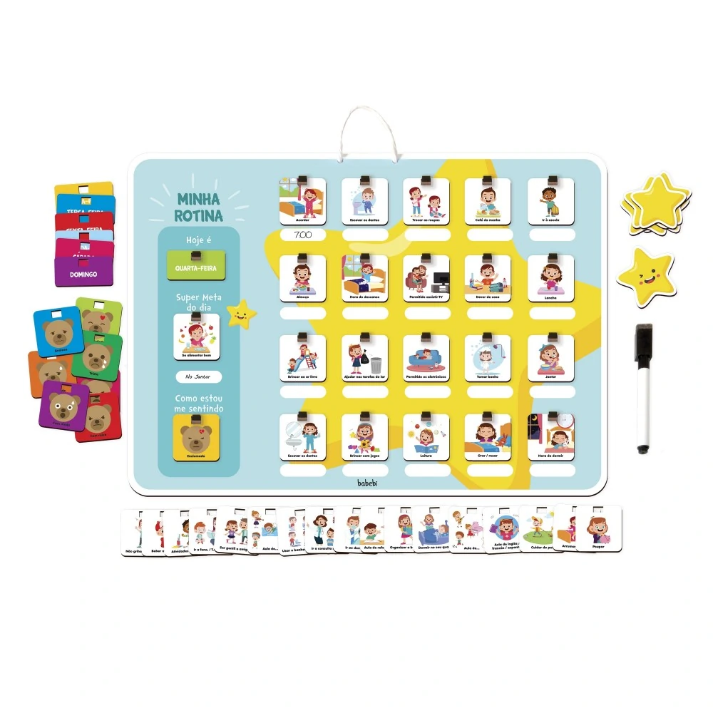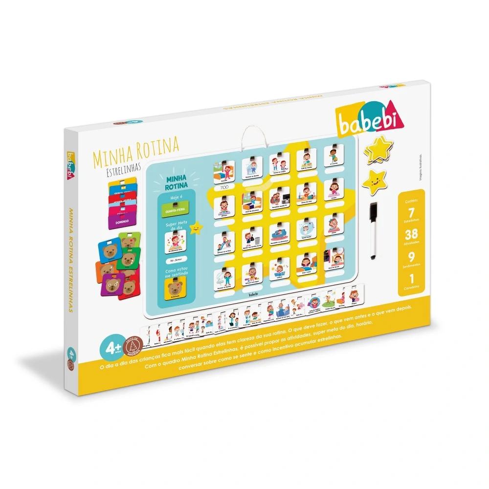 O dia a dia das crianças fica mais fácil quando elas tem clareza da sua rotina. O que devem fazer, o que vem antes e o que vem depois. Com o quadro Minha Rotina Estrelinhas é possível propor atividades, super meta do dia, horários, conversar sobre como se sente e como incentivo conquistar estrelinhas.