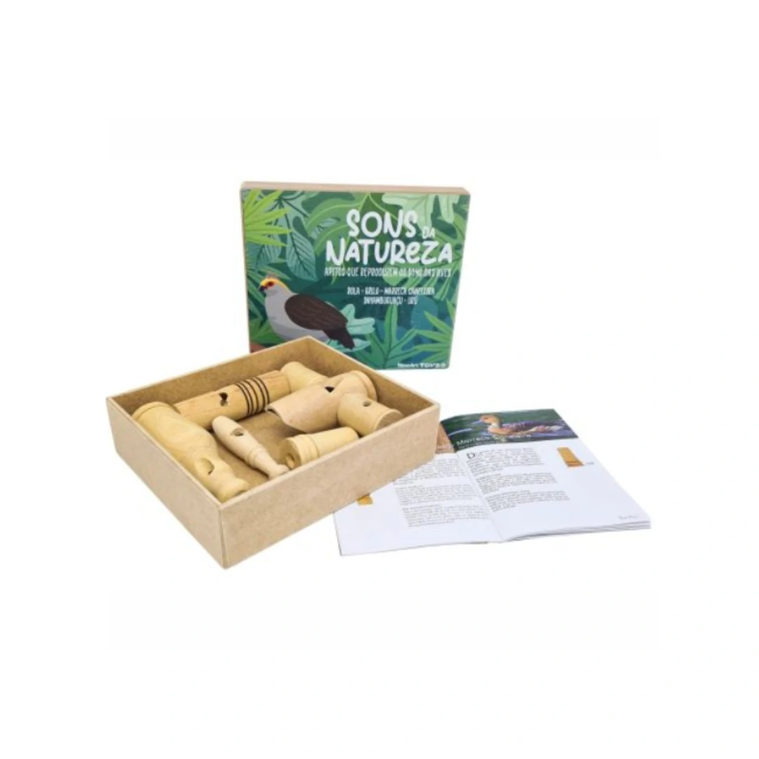 Apitos que compõem a caixa: Marreca Caneleira/ Rola/ Urú/ Grilo/ Inhambuguaçú.